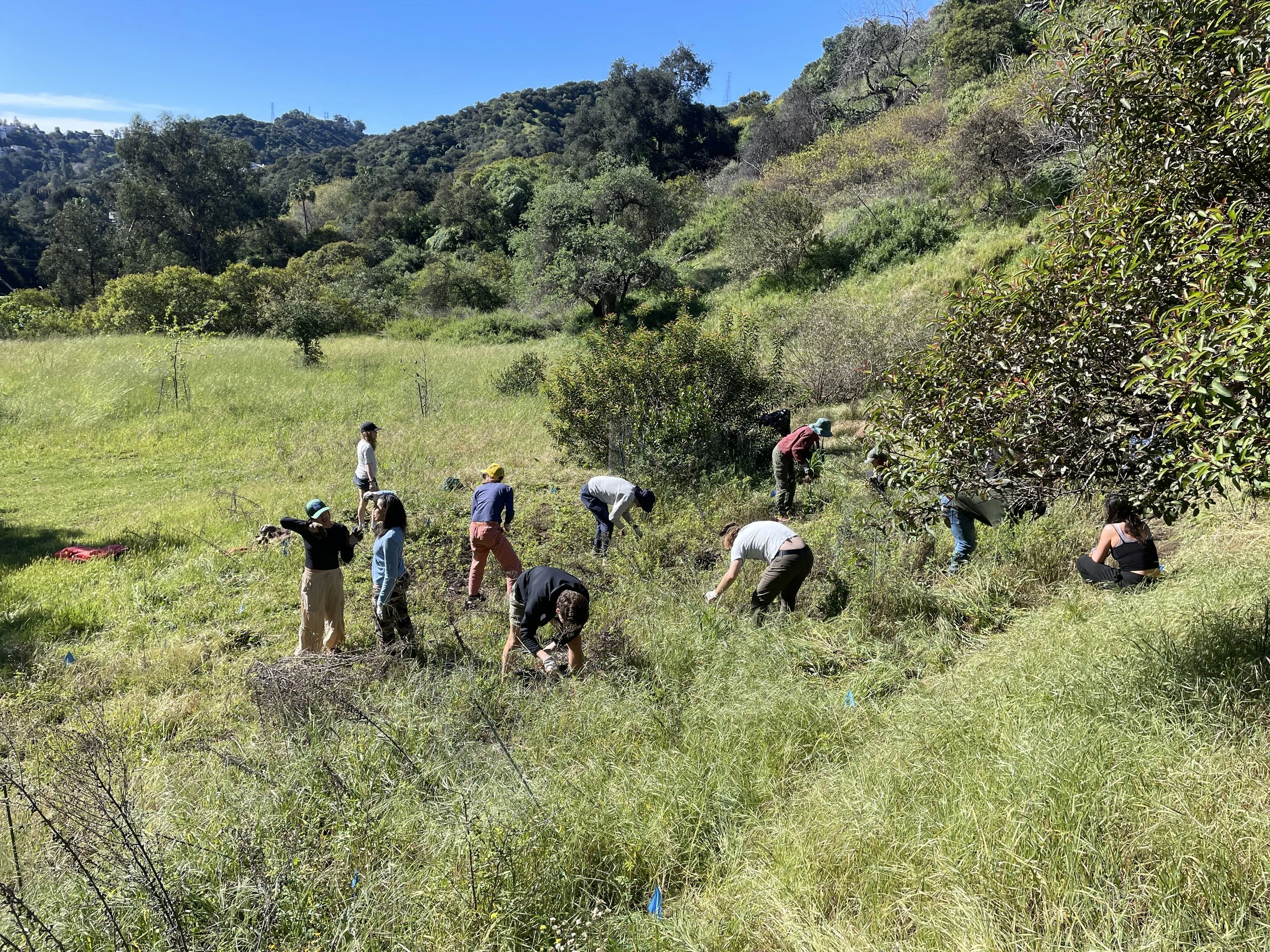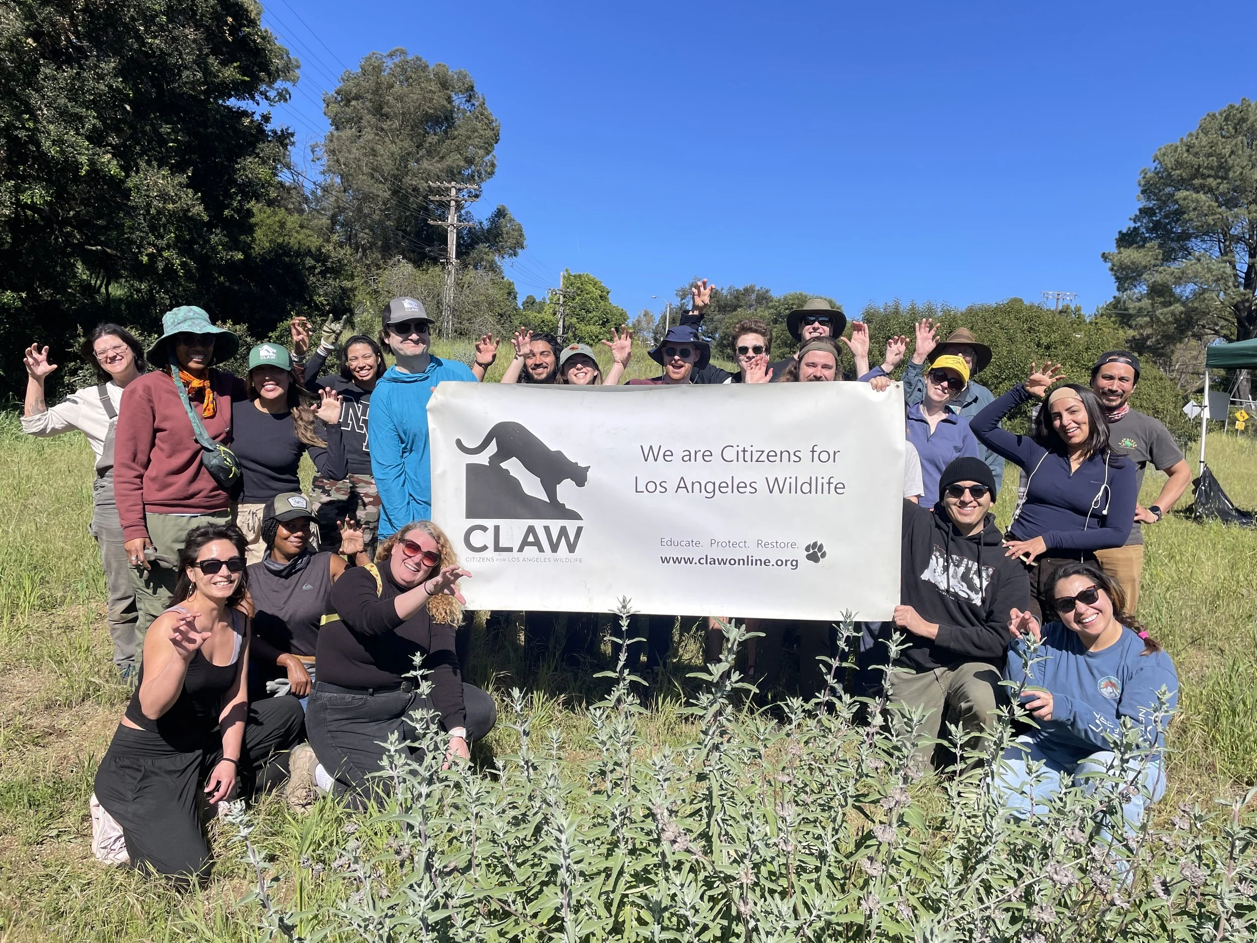Habitat restoration is part of CLAW’s commitment to protect and restore the wildlife habitat of greater Los Angeles. Our team of volunteers monitors and nurtures new native plants including wild flowers, shrubs, and trees for 1-3 years until they are established. This work includes weeding, watering, and humanely protecting young plants from deer and gophers.